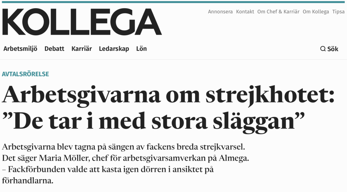Tidningen näringslivet Tjänstemannafacken varslar om strejker – ”Aggressivt” | Tidningen Näringslivet