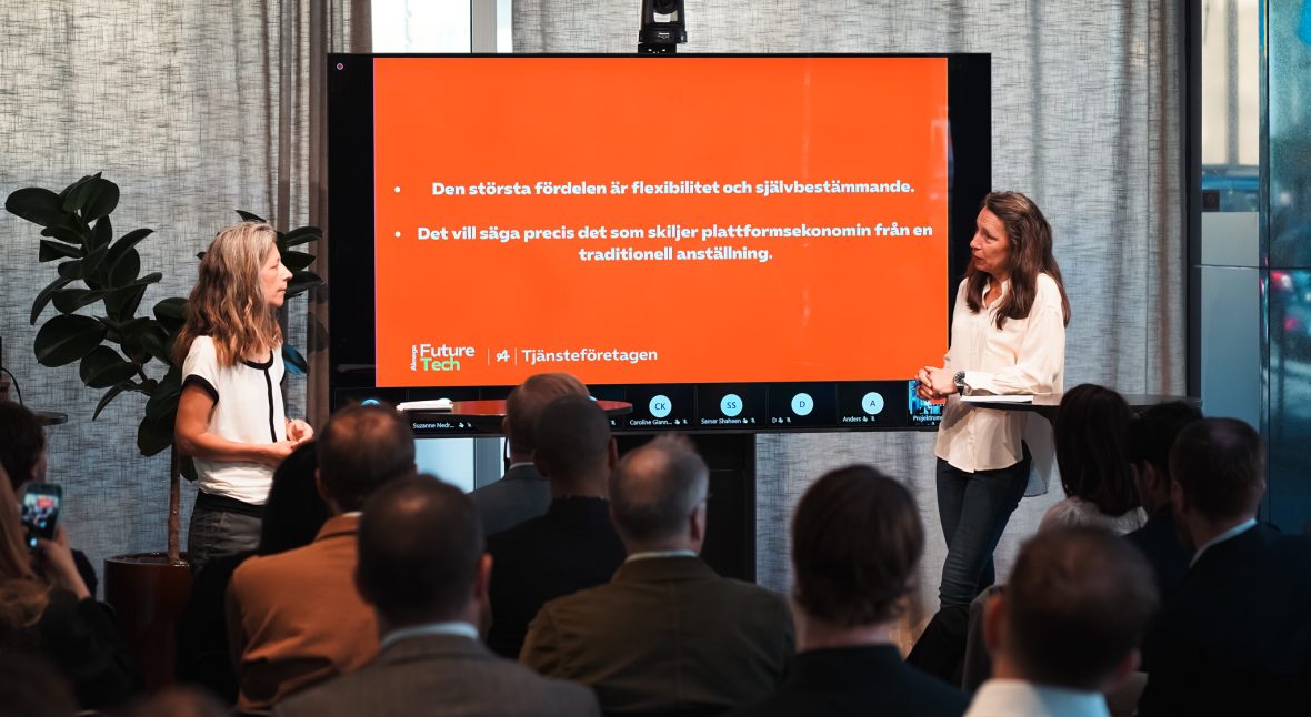 Almega FutureTech har tillsammans med Almega Tjänsteföretagen genomfört ett seminarium om plattformsarbete där frågorna diskuterades under ledning av Mia Odabas.